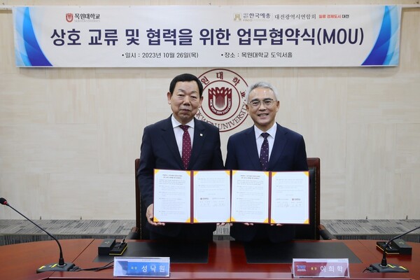 (사)한국예술문화단체총연합회 대전광역시연합회(회장 성낙원)는 목원대학교(총장 이희학)와 지역예술계의 발전과 인재 양성을 위한 업무협약을 체결했다.