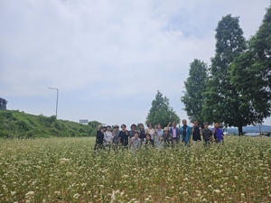 [경기/스타트뉴스TV=홍성규 기자] 고삼면 주민자치위원회는 지난 20일 2024년 주민참여예산에 공모해 주민자치 특색 사업의 일환으로 한천변 일원에 4,950㎡ 로 조성된 메밀밭을 방문했다. 조휘경 고삼면 주민자치위원장은 “바로 지금, 순백의 아름다운 메밀꽃이 활짝 피어 우리 위원들과 함께 추억을 만들고 싶었으며 모든 사람들에게도 이 아름다운 풍경을 알려주고 싶다” 며 “메밀밭에서 순백의 매력에 빠져보고 새롭게 올라오는 수세미 터널도 감상하며 시원하게 쭉 뻗은 메타세쿼이아 길을 걸으며 추억을 쌓길 바란다”고 말했다. 신윤주 고삼 부