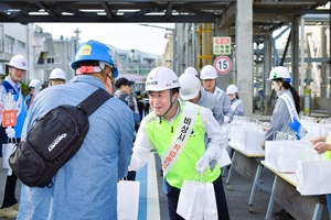 [전남/스타트뉴스TV=이정아 기자] 여수시가 21일 오전 국가산단 내 금호석유화학㈜여수고무제2공장 대정비 사업장에서 ‘여수산단 출근길 안전문화 캠페인’을 펼쳤다. 이날 캠페인은 정기명 여수시장을 비롯해 여수화학재난방재센터, 한국산업단지공단 전남지역본부, 한국가스안전공사 전남동부지사, 한국산업안전보건공단 전남동부지사 등 유관기관과 금호석유화학㈜ 장갑종 공장장을 비롯한 노조위원장과 임직원 등이 함께 참여했다. 특히 대정비 근로자 출근시간에 맞춰 아침 7시20분부터 시작된 캠페인에서 참여자들은 근로자에게 홍보물을 배부하며 안전구호를 제창