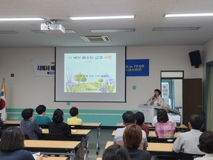 [경남/스타트뉴스TV=차의정 기자] 거창군은 지난 18일 거창군청소년수련관에서 147회 거창아카데미가 60명의 군민들이 참여한 가운데 개최됐다. 이번 147회 아카데미는 인문학의 꽃인 시를 주제로 해서 강정희 강사를 초청해 ‘시에서 배우는 삶과 사랑, 시처방전’라는 주제로 사람들이 시에서 느끼는 감정을 솔직하게 표현해 보고 시낭송을 통해서 서로의 삶을 다시금 느끼는 시간을 가졌다.강정희 강사는 시 낭송대회 수상, 시집출간 등 작품활동과 함께 수많은 상담과 강의를 기반으로 시 치유학에 대해 연구해 시로 마음을 치유할 수 있는 방법을