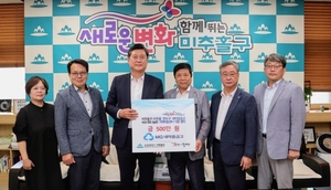 [인천/스타트뉴스TV=임흥규 기자] 인천 미추홀구는 19일 구청장실에서 미추홀구·연수구 18개 새마을금고 봉사단체 엠지 사랑나눔회와 지역아동센터 지원을 위한 협약을 체결했다. 이번 협약에 따라 사랑나눔회는 연 2회 500만원씩 관내 15개소 지역아동센터를 위한 후원금을 지원하며 협약 해지 의사가 없는 경우 자동으로 2년씩 연장 지원하기로 했다.이성운 회장은 “협약을 통해 미추홀구 지역아동센터 아동들을 위한 다양한 활동과 학업 지원에 보탬이 되길 바란다”며 “앞으로도 사회공헌 기회를 넓히고 나눔 활동에 힘쓰겠다”고 전했다.이영훈 구청