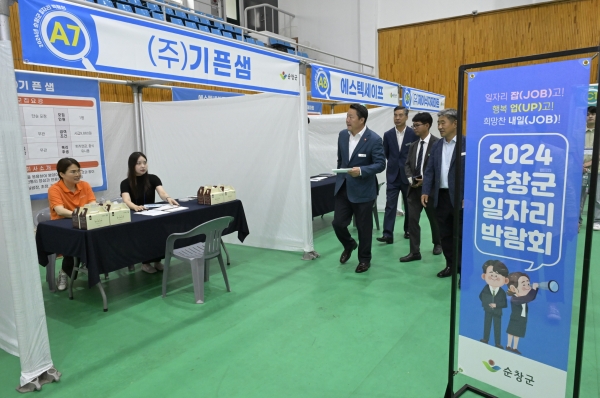 [전북/스타트뉴스TV=장민희 기자] 순창군은 지난 21일 장애인체육관에서 열린‘2024년 순창군 일자리박람회’에 구직자 300여명과 참여기업 48개 등이 참여한 가운데 성황리에 마쳤다고 밝혔다. 일자리 잡고 행복 업고 희망찬 내일이라는 슬로건을 내걸고 개최한 이번 박람회는 채용상담관, 취업지원관, 체험존 운영 등 다양한 테마로 운영됐다.군은 이날 박람회에 18개 기업체에 87명의 구직자가 현장 면접에 참여해 19명이 채용 확정됐고 13명은 2차 면접과 기업의 심사결과를 기다리고 있다고 전했다.이번에 참가한 18개 기업은 인사담당자가