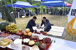 [전북/스타트뉴스TV=장민희 기자] 해원·화합·평화통일을 염원하는‘제19회 회문산 해원제’가 지난 22일 구림면 회문산 비목공원 위령탑에서 열렸다.‘회문산 해원제’는 6.25 한국전쟁 당시, 순창군 구림면 회문산을 중심으로 순직한 호국영령과 무고하게 희생된 민간인들의 명복을 기원하는 행사로 순국선열과 6.25 전쟁 희생 양민들의 넋을 기리고 지역민들의 화합을 도모하기 위해 매년 열리고 있다.회문산 제전위원회와 구림면 청년회의 주관으로 열린 이날 행사에는 최영일 군수를 비롯해 박희승 국회의원, 신정이 의장, 구림면 기관·사회단체장,