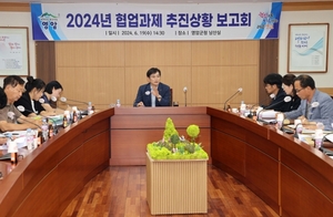 [전남/스타트뉴스TV=송윤진 기자] 영암군이 19일 군청에서 ‘2024년 협업과제 추진상황 보고회’를 열고 17개 협업과제 추진 상황과 향후 계획을 공유했다. 민선8기 영암군은 협업문화 정착과 시스템을 구축을 위해 다양한 협업과제를 추진하고 있다. 올해 초 협업 활성화 계획을 영암군 전 부서가 공유하고 수시 협업회의를 개최해 소통 속에서 군정이 이뤄지도록 했다. 나아가 지연 과제들을 중점협업과제로 선정해 전문가 자문 워크숍, 협업 우수 공무원 인센티브 제공 등을 실시하고 있다. 이날 보고회에서 제기된 협업과제에는 △한옥문화 비엔날레