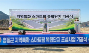 [영동=스타트뉴스 이철휘 기자] 충북 영동군은 21일 양산면 가곡리 722번지 일원에서 ‘지역특화 스마트팜 복합단지 조성사업 기공식’을 가졌다고 밝혔다.이번 기공식은 추운 날씨에도 불구하고 주민과 관계자들의 높은 관심 속에, 성황리에 진행됐다. 정영철 영동군수, 신현광 영동군의회 의장, 도의원 및 군의원, 관내 사회·기관 단체장 등 150여 명이 참석해 지역특화 스마트팜 복합단지 조성사업의 본격적인 시작을 함께 축하했다. 지역특화 스마트팜 복합단지 조성사업은 농식품부 공모사업으로 선정된 ‘지역특화 임대형 스마트팜 조성사업’, ‘저탄