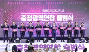[내포=스타트뉴스 이철휘 기자] 전국 최초의 특별지방자치단체인 충청광역연합이 18일 정부세종컨벤션센터에서 공식 출범식을 가졌다. 이날 행사에는 우동기 지방시대위원장과 충청권 4개 시도지사 및 시도의회 의장, 김민재 행안부 차관보 등 200여 명이 참석해 출범을 축하했다. 출범식은 홍보 영상 시청, 추진 경과 보고, 기념사 및 축사, 출범 퍼포먼스, 기념촬영 순으로 진행됐다.충청광역연합은 지방분권 실현과 지역 균형 발전을 목표로 수도권 집중으로 인한 지방소멸 위기에 대응하기 위해 충청권 4개 시도가 협력해 설립한 특별지방자치단체다.이