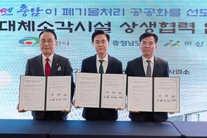 [아산=스타트뉴스 이철휘 기자] 충남 아산시(권한대행 조일교)가 천안시와 폐기물소각시설 설치 문제로 빚어진 3년 5개월간의 갈등을 해소하고 상생협력의 발판을 마련했다.조일교 아산시장 권한대행은 22일 천안시 환경에너지사업소에서 김태흠 충남지사와 박상돈 천안시장과 함께 ‘천안시 생활폐기물 소각시설 1호기 대체시설(이하 대체소각시설) 상생협력’ 업무협약을 체결했다.이번 협약에 따라 아산시를 비롯한 충남도와 천안시 등 3개 기관은 장기간 표류했던 대체소각시설을 설치·운영하기 위해 협력하기로 했다.주요 협약 내용은 ▲대체소각시설 설치 협력