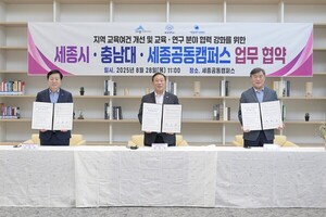 [세종=스타트뉴스 이철휘 기자] 세종시(시장 최민호)가 충남대학교, 세종공동캠퍼스운영법인과 함께 정부의 ‘서울대 10개 만들기’ 정책에 걸맞는 지역 교육 환경을 공동 조성하기로 했다.3개 기관·대학은 28일 세종공동캠퍼스에서 지역 교육여건 개선 및 교육‧연구 분야 협력 강화를 위한 업무협약을 체결했다.이번 협약은 융·복합 창의인재 전문 인력을 양성하고, 충남대와 공동캠퍼스와의 협력으로 지역 교육여건을 향상시키고자 마련됐다.협약에 따라 이들은 ▲지역 교육여건 개선 공동 협력 방안 마련 ▲융복합 창의인재 양성 및 교육‧연구 공동사업 추