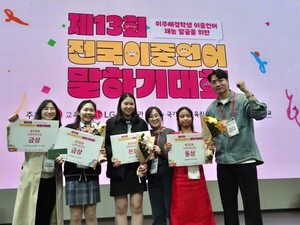 [대전=스타트뉴스 이철휘 기자] 대전시교육청은 8일 서울 LG사이언스파크에서 열린 제13회 전국이중언어말하기대회에서 대전 대표로 참가한 학생 3명이 모두 교육부장관상을 수상하는 쾌거를 거두었다고 밝혔다.이번 대회 중등부문에서는 대전외국어고 한리안 학생이 금상(교육부장관상), 대전제일고 최원진 학생이 은상(교육부장관상)을 수상했다. 초등부문에서는 대전대화초 나탈리 학생이 동상(교육부장관상)을 수상했다. 이로써 대전 대표 학생 모두가 전 부문에서 교육부장관상을 수상하는 뛰어난 성과를 거두었다.전국이중언어말하기대회는 교육부와 ㈜LG가 주