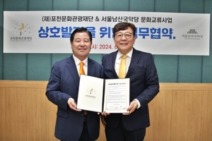 [경기/스타트뉴스TV=조순옥 기자] 포천문화관광재단과 남산국악당은 지난 21일 포천반월아트홀에서 ‘포천시·서울시 문화예술 활성화’를 위한 업무 협약을 체결했다. 이번 협약은 두 기관의 역량과 내부 자원을 바탕으로 상호 협력 체계를 구축한 뒤 문화 교류 사업을 추진해 공연 예술을 활성화하기 위해 마련됐다.두 기관은 협약에 따라 △포천·서울 문화예술 활성화를 위한 연계 사업 △지역간 문화예술 확산을 위한 공동체 의식 고취 △문화 향유 기회 증진을 위한 공동 콘텐츠 개발 등 문화예술 활성화를 위한 다양한 협업을 진행하기로 했다. 남산국악