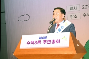 [경기/스타트뉴스TV=최혜명 기자] 구리시는 6월 22일 수택3동 행정복지센터 1층 공연장에서 수택3동 주민자치회 주관으로 ‘제4회 수택3동 주민총회’를 개최했다.이날 총회에서는 2023년 수택3동 주민자치회 활동 보고와 감사보고 2024년 주민자치회 현황 보고 2025년 주민자치 사업계획에 대한 설명이 있었으며 이후 현장 투표와 집계 결과 발표가 진행됐다.투표 결과, 자치 계획은 △제7회 장자못축제 △장자호수공원역 녹지 △가족 문화 놀이터 △주민센터 발표회 △탄소중립 캠페인 △우리 동네 예술제 △어르신 지팡이 나눔 △사라지는 벌말