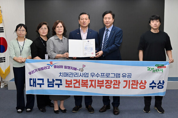 대구시 남구는 치매 우수프로그램 분야 보건복지부장관 기관상을 수상했다고 21일 밝혔다.