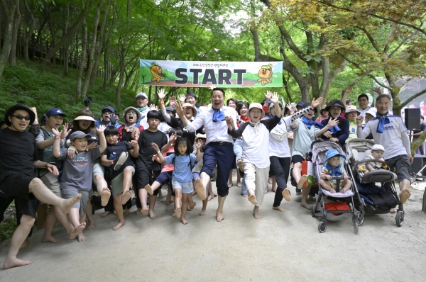 이날 행사에는 무려 500명의 참가자가 맨발트레킹에 참여했으며 참가자들은 병풍폭포에서 현수교까지 산책로를 따라 맨발로 걸으며 자연과 함께하는 힐링의 시간을 보냈으며 중간지점인 천우폭포에서는 잠시 쉬어가며 버스킹 공연을 감상했다.