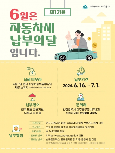 이번에 부과되는 자동차세는 지난 1월 1일부터 6월 30일까지 소유 기간에 대한 세금으로 과세기준일인 6월 1일 기준 등록 원부상 소유자가 대상이다.