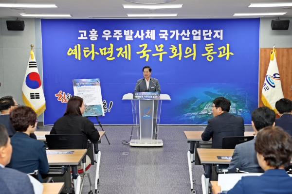 한편 고흥 우주발사체 국가산업단지는 고흥군 봉래면 일원에 약 46만 평으로 조성되며 예비타당성 조사 면제를 위한 절차를 최대한 신속히 마무리하고 2025년 상반기까지 산업단지 계획을 수립할 계획이다.