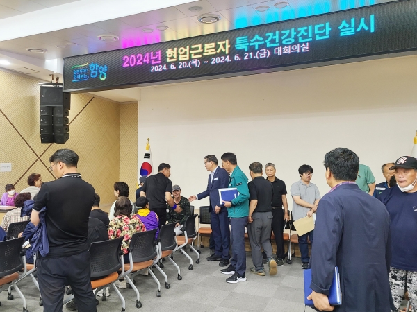 함양군 관계자는 “현업근로자 건강진단 결과를 토대로 현업업무 종사자들이 건강하고 활력 있게 업무를 할 수 있는 환경을 만들 수 있도록 최선을 다하겠다”며 “주기적인 건강진단으로 근로자의 작업성 질환을 조기에 찾아내어 사후관리와 신속한 치료지원으로 근로자의 건강을 지키겠다”고 밝혔다.
