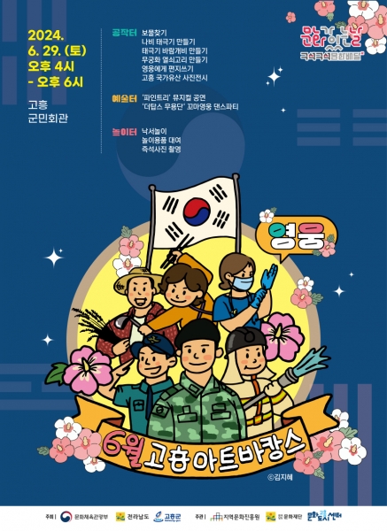 지난 6월 1일 ‘봄소풍’을 컨셉으로 군민들의 눈과 귀를 즐겁게 했다면 이번 6월 29일 고흥군민회관에서 펼쳐질 두 번째 고흥아트바캉스는 ‘영웅’을 주제로 나라 사랑을 실천하기 위한 다양한 프로그램을 운영해 감동을 주고 군민들의 가슴을 뜨겁게 할 전망이다.